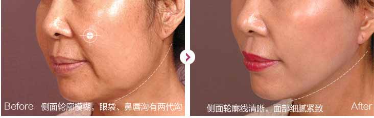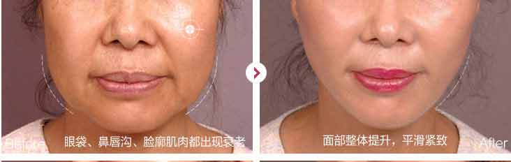 50岁以上整天面部衰老 主要表现为:眼轮廓、鼻唇沟、下巴、面部下垂无弹性