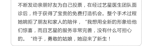 首先艺星主任为杨兰实施了美杜莎综合美眼术的眼部调整,改变眼睛小、单眼皮、眼睛无神、眼距过宽等问题。手术刚结束,杨兰就迫不及待照了镜子,巨大的改变让她开心得笑了起来。